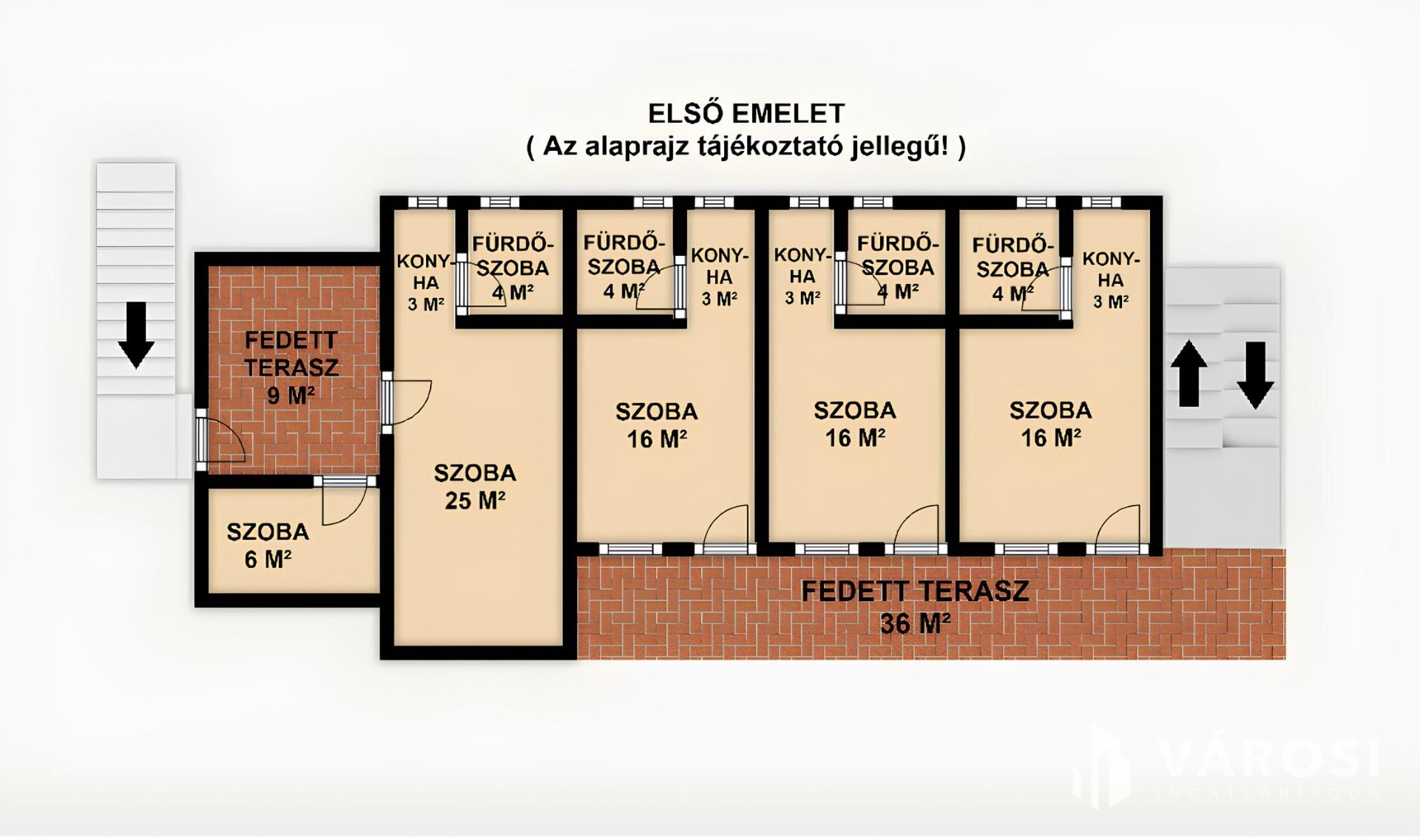 11 apartmanhoz saját kijáratú terasz vagy erkély tartozik, míg a legfelső szinten 4 apartmanhoz egy nagy közös erkély kapcsolódik.