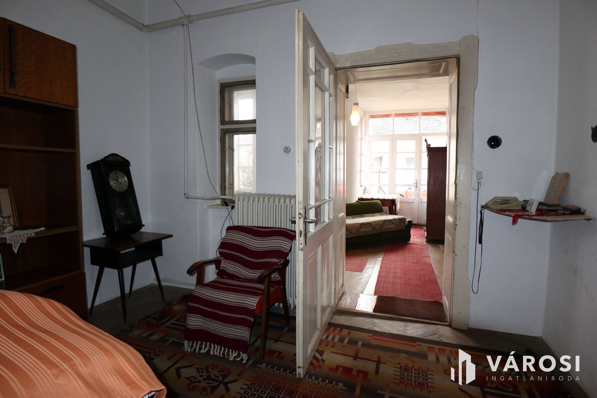 A háromszobás tágas, napos 129 m2-es lakóépület korából adódóan minimum esztétikai felújítást igényel.