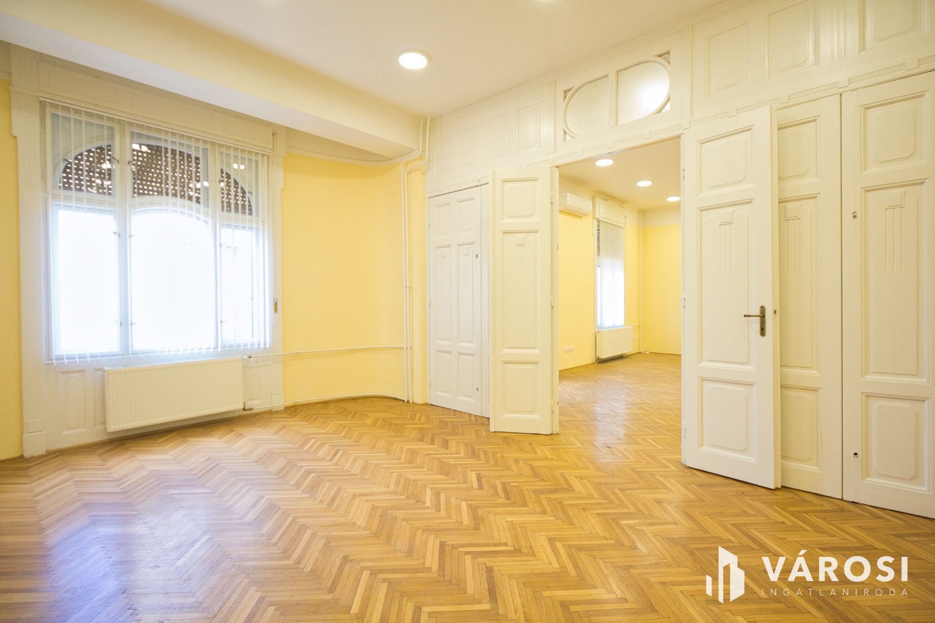 Szeged belvárosában, a Kiss Ernő utcában kiadó egy exkluzív felújított 154 m2-es , iroda a második emeleten. A szobák parkettásak, a többi helyiségben hidegburkolatot raktak le. Minden helyiség gyönyörűen felújított.