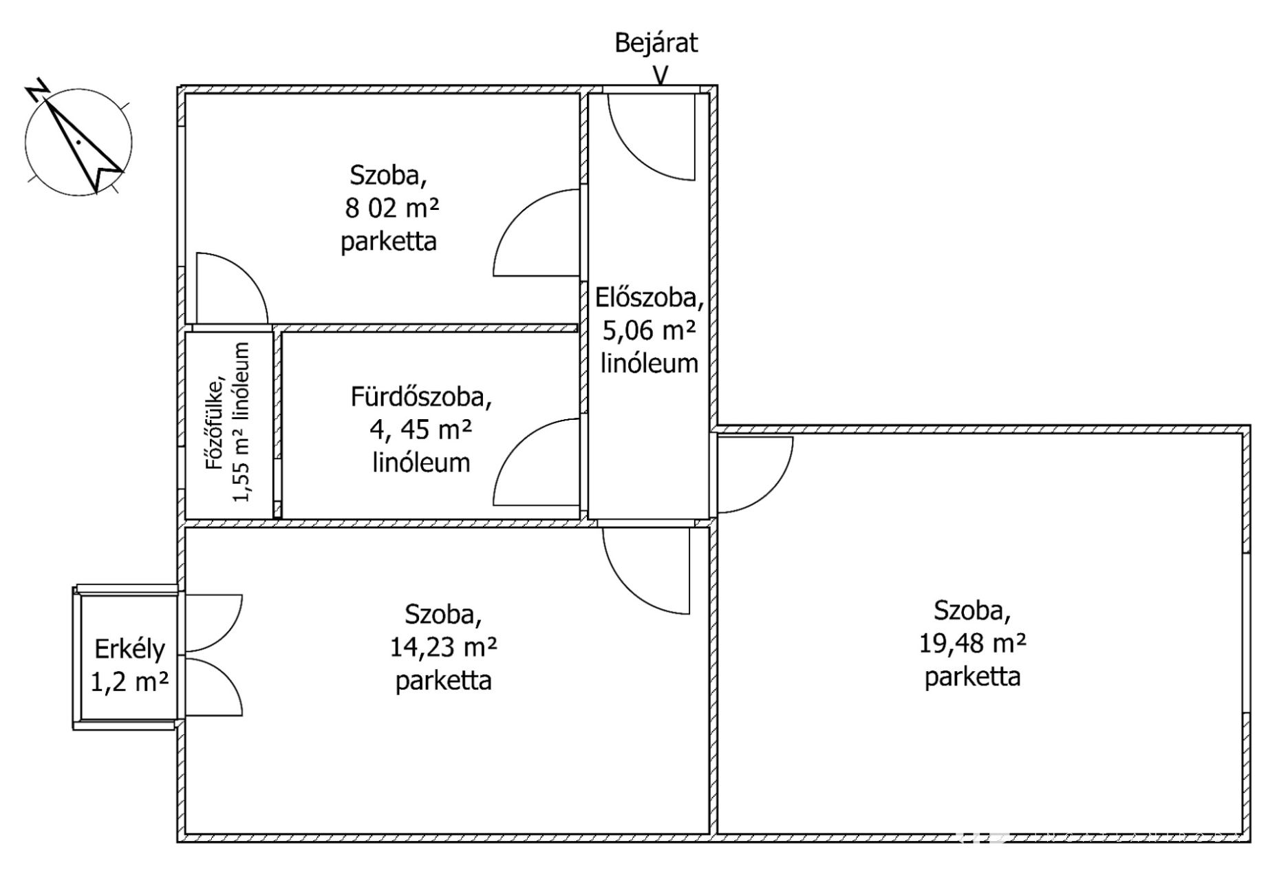 Kiváló elosztás, különnyíló szobák.