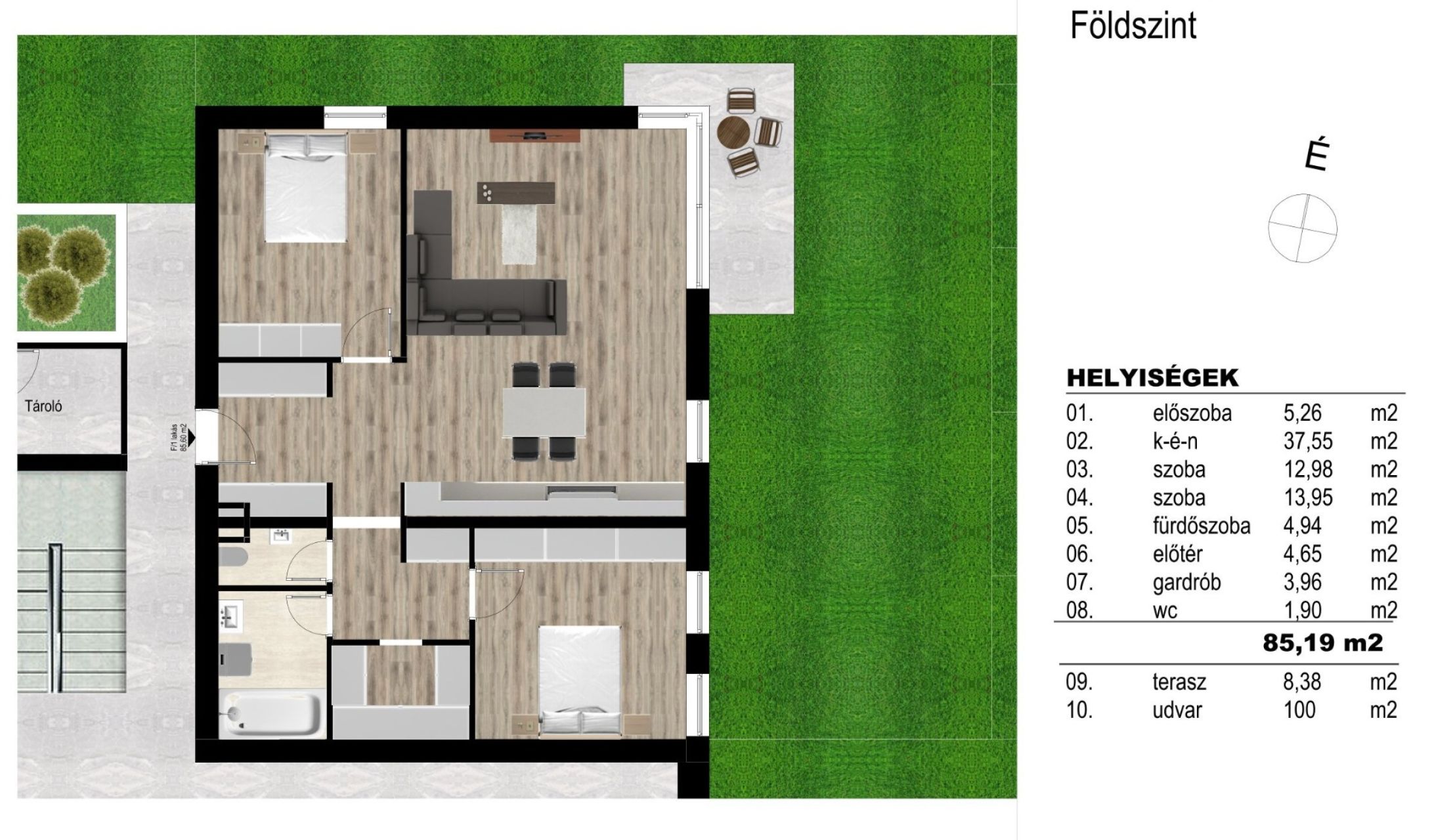 - 2 tágas szoba és 1 világos nappali, melyek maximális kényelmet biztosítanak