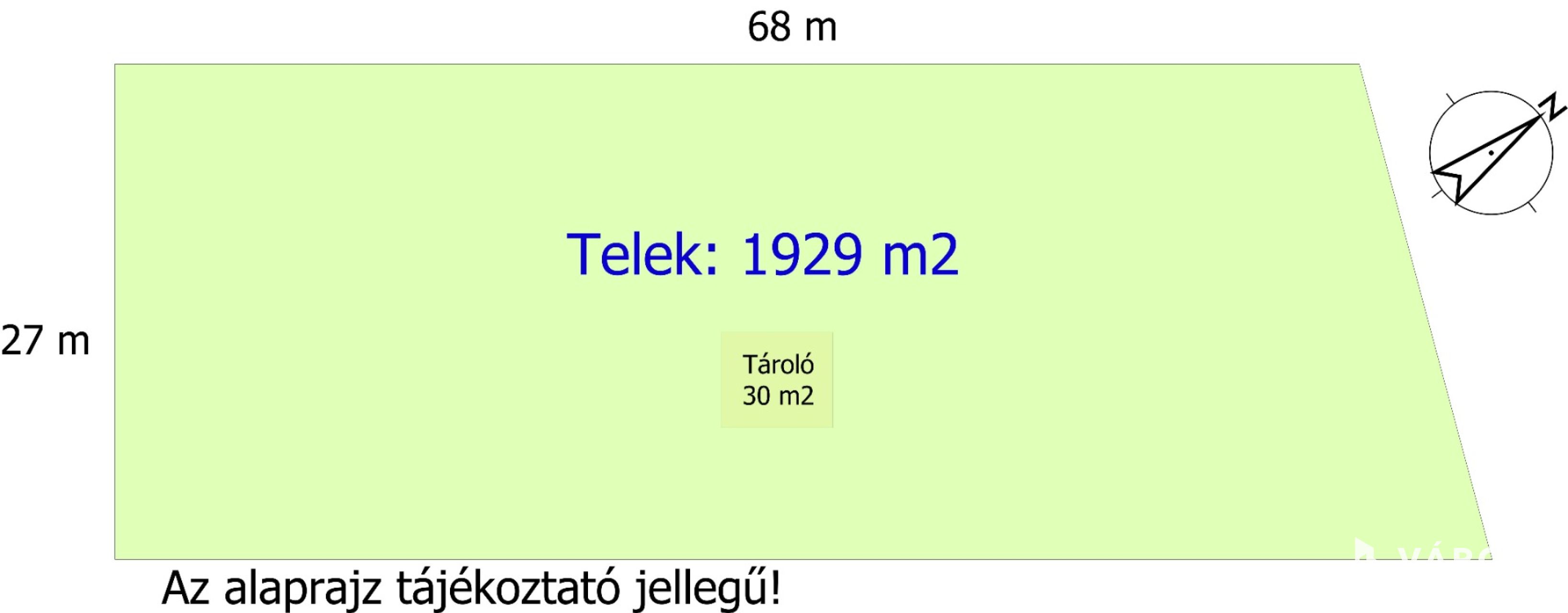 A telek szép, rendezett, egyenletes; murvás útról közelíthető meg, utcafront szélessége 27 méter.