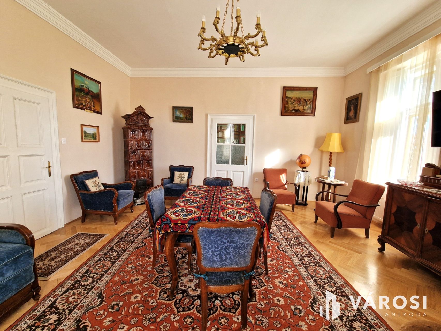 + Fűtését, a nappaliban és dolgozóban elhelyezett egyedi kivitelezésű, fa tüzelésű cserépkályhák támogatják.
