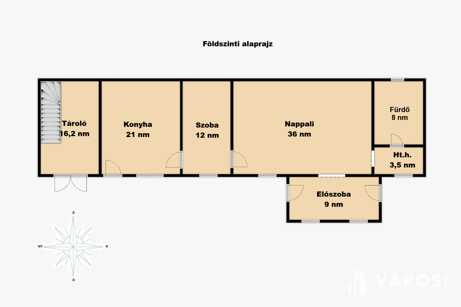 A földszinten nappali, konyha, hálószoba, fürdőszoba, háztartási helyiség és tároló (lépcsőház) található. Az emeleten pedig nappali, 2 hálószoba, konyha és fürdőszoba helyezkedik el.