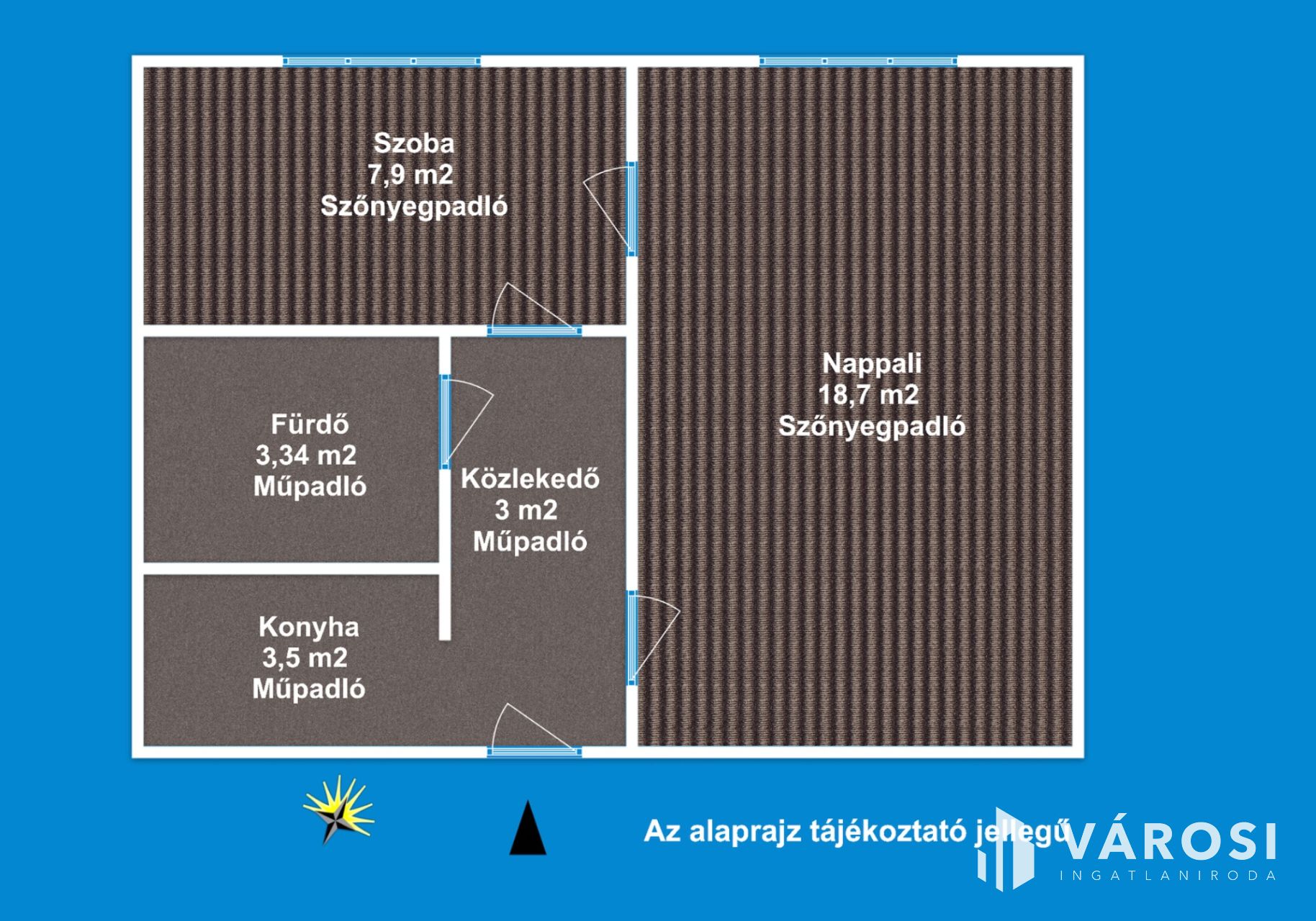 A lakás 1 db nappalival, 1 db hálószobával, 1 db fürdőszobával (Wc-vel), közlekedővel, rendelkezik.