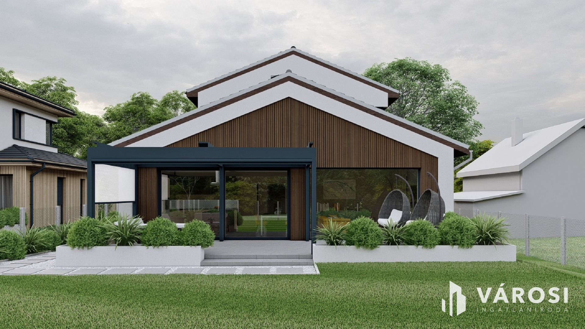 - nettó alapterület: 165 m2 + 20,1 m2 fedett bejáró és erkély + 37 m2 terasz
