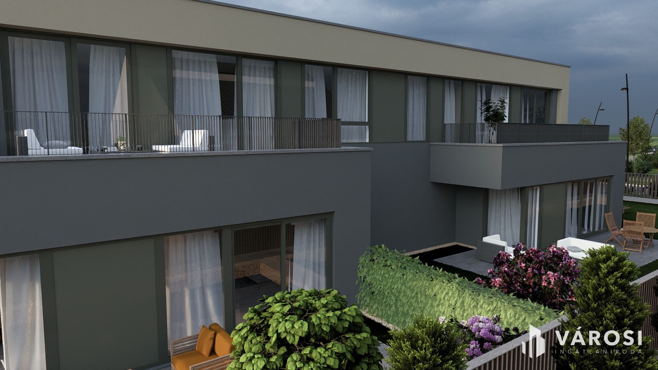 A ház földszintjén csak a garázsnál érintkezik a szomszéddal, így valódi szeparáltságot biztosít – szinte önálló családi házként élhető.