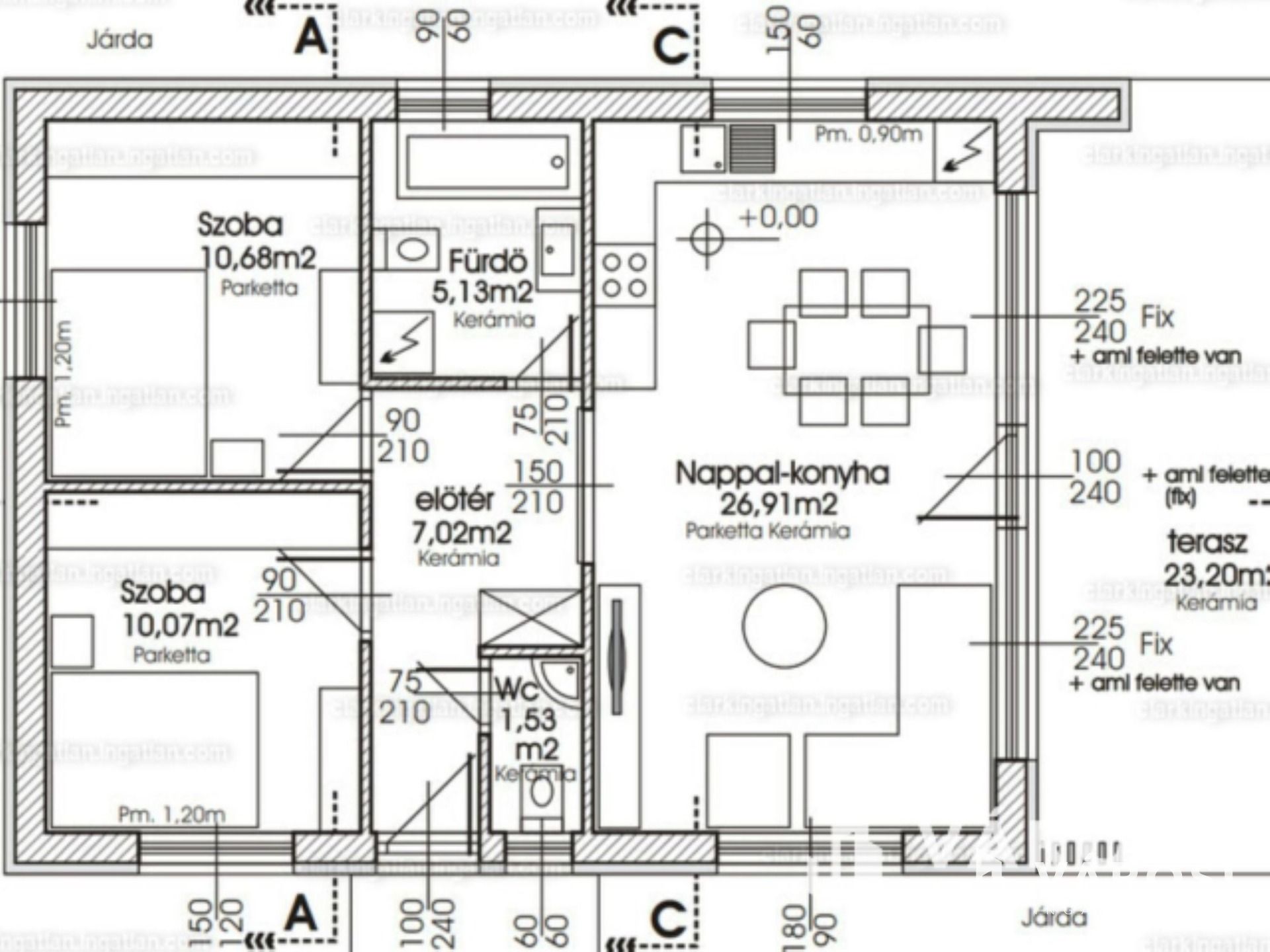 Az ingatlan elosztása kiváló, az alábbi helyiségek alkotják: amerikai konyhás nappali (teraszkapcsolattal), 2 hálószoba, 1 fürdőszoba és egy külön wc. Köszönhetően a prémium anyagok felhasználásának és a magas műszaki tartalomnak rendkívül alacsony a fenntartási költsége. A fűtését hőszivattyú biztosítja (padlófűtéses hőleadással), de alternatív megoldásként egy inverteres klíma is az új tulajdonos rendelkezésére áll. A műanyag hőszigetelt nyílászárók elektromos alumíniumredőnnyel és rovarhálóval lesznek ellátva.